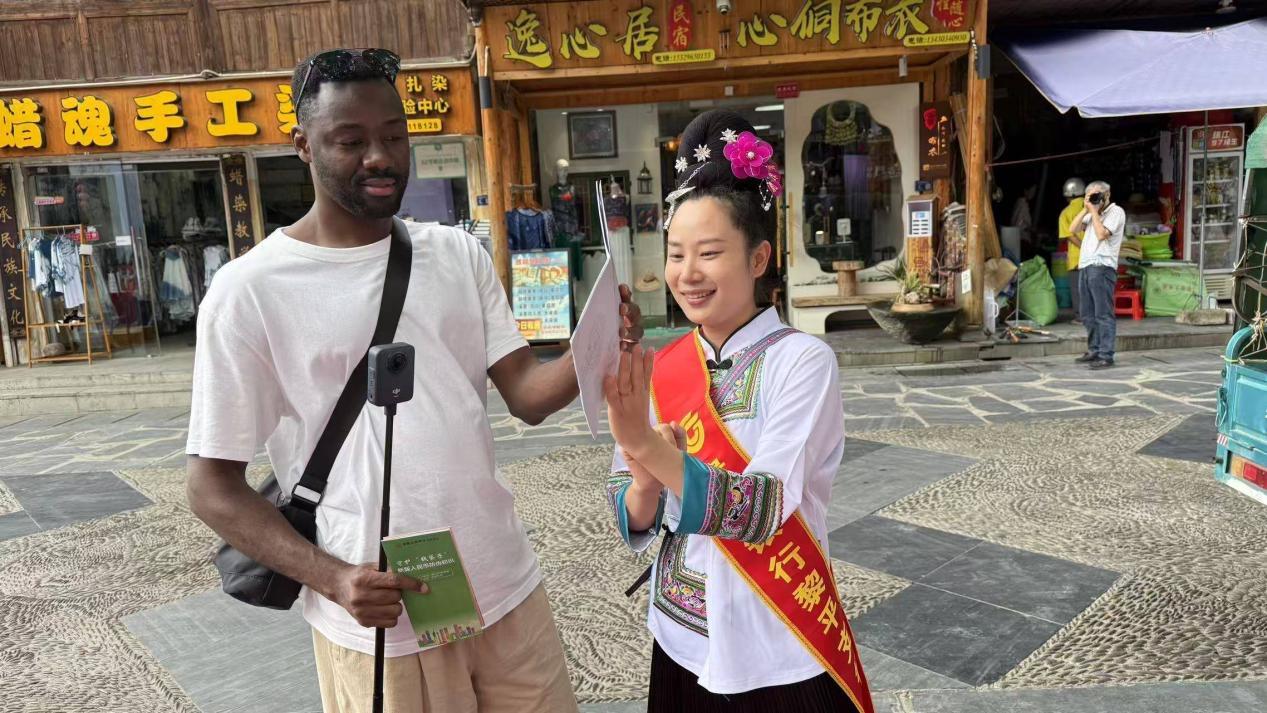 知识讲解,力求“接地气”。工作人员巧妙运用侗乡方言,结合近期频发的电信诈骗案例,层层剖析骗局背后的套路,同时深入浅出地讲解安全支付操作、信用记录保护等关键要点,助力村民一眼识破诈骗陷阱。而面对来自异国的游客,工作人员则以英语亲切交流,围绕外汇知识详尽讲解跨境支付流程;结合支付安全,生动演示移动支付的便捷操作与风险防范技巧;同时,针对国际游客可能遭遇的“旅游消费诈骗”“假币陷阱”等难题,通过鲜活案例剖析,深入宣讲反诈及反假币知识,让国际友人也倍感贴心。
